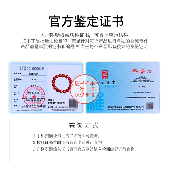 查证书:正规品牌附国家级鉴定证书,可扫码查询真伪。