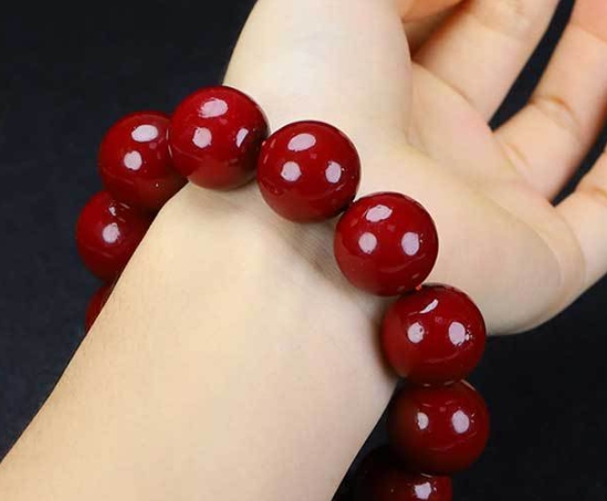 观纹理:真朱砂珠子表面有天然晶纹,每颗独一无二;假朱砂纹理均匀或无纹理。