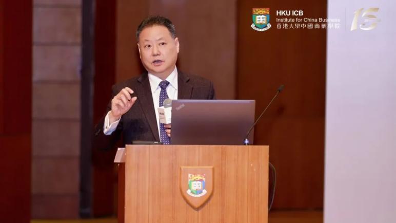 香港大学协理副校长、香港大学中国商业学院(HKU ICB)创始院长刘宁荣教授以“新世界与旧世界的临界点:开放性和创造力”为题发表开学致辞,欢迎来自全国各地的新学员。