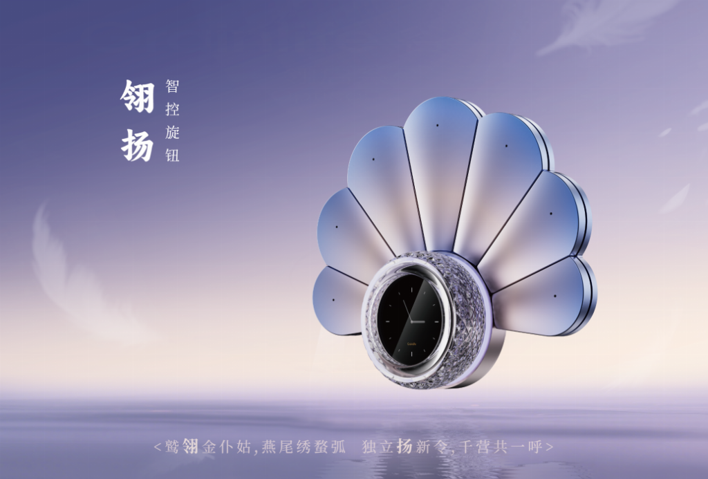 本设计以“孔雀开屏”为核心意象,旨在将自然界的华美姿态与智能家居的现代科技完美融合;孔雀开屏象征着优雅、尊贵与对美好生活的展示,这正是我们对智能家居体验的追求 — 便捷、舒适、赏心悦目;中心旋钮则如同孔雀翎羽上的“眼斑”,是智慧的焦点与控制的枢纽。整个设计力求在视觉上引人注目,在操作上直观高效,成为家居空间中的艺术化控制中心,建立用户的情感共鸣;在方寸间传递“科技与生命共舞”的东方智慧美学。功能上
