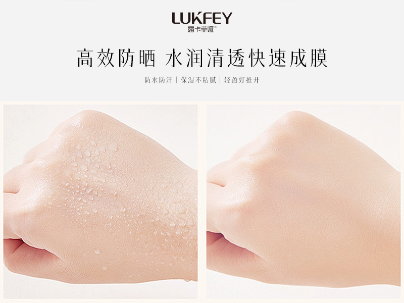 乳液的质地,不怎么防水,轻微的泛白,物理加化学的双重结合,适合所有的肤质去使用,流动性大于安耐晒。