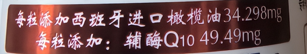 每粒添加西班牙进口橄榄油 34.298mg,这种搭配能够促进辅酶 Q10 的吸收,还可以进行氧化还原实验,证明其强大的功效。
