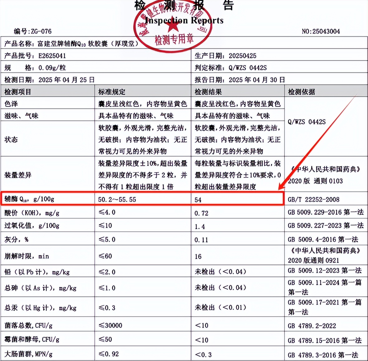在含量方面,每 100 克含辅酶 Q10 高达 50.2g,而实际检测结果更是达到了惊人的 54g,在目前国内的蓝帽保健品中含量独占鳌头,处于含量天花板级别。