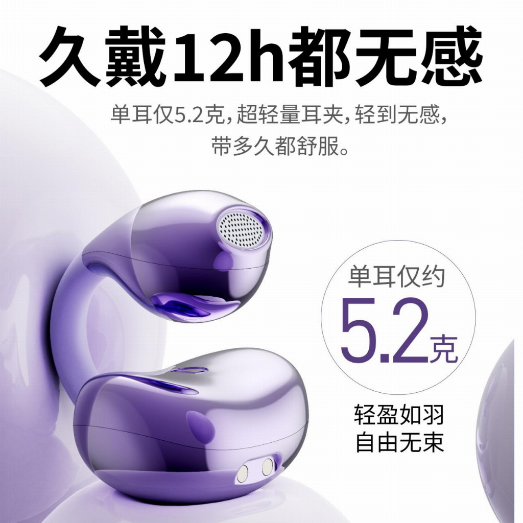 开放式设计,既能享受音乐,又能留意周围环境音,安全又健康,还能保护听力。外观设计简约别致,金属电镀工艺涂层,流光紫、云岩白、曜石黑、玫瑰金四种颜色,时尚又百搭,不仅是耳机,更是耳畔潮品。