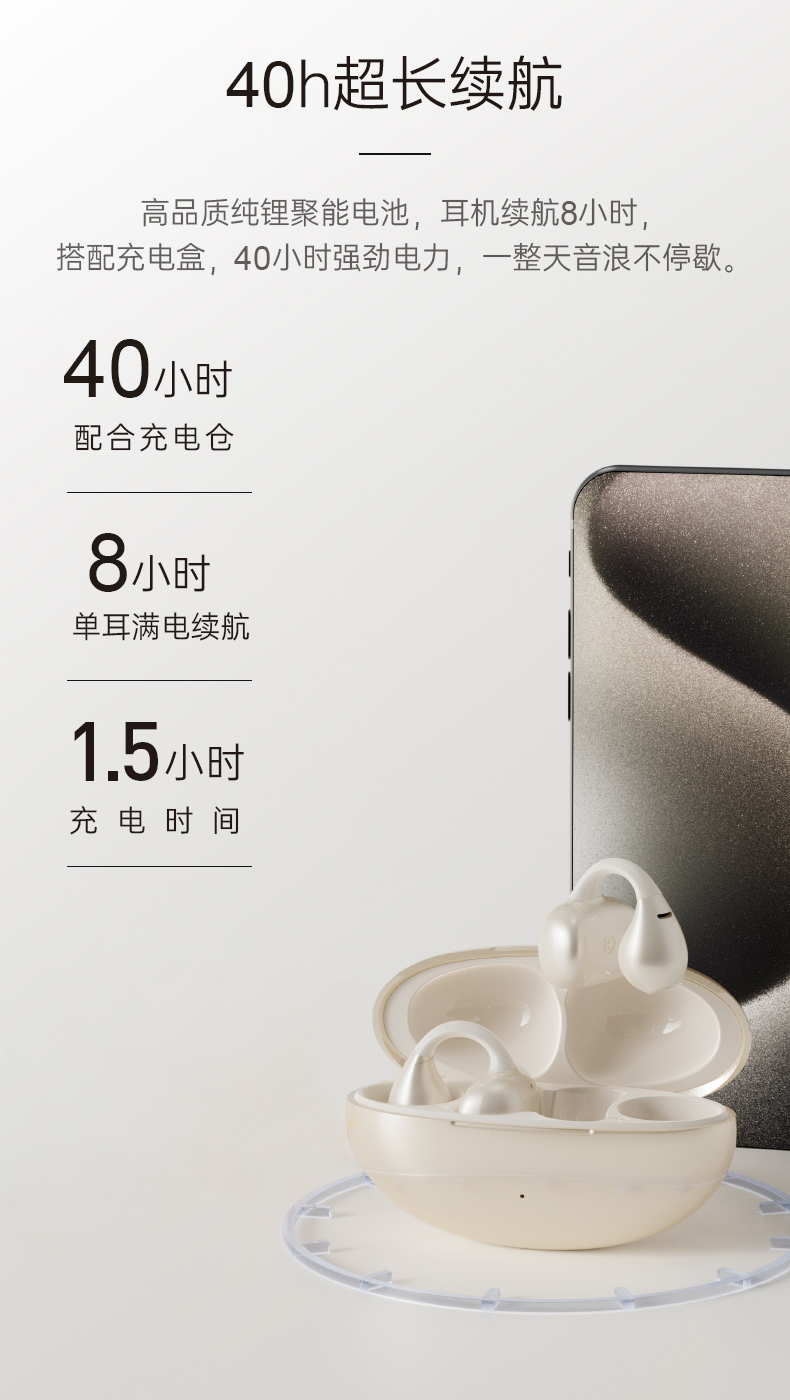 对于经常外出的人来说,耳机续航很重要。ARV22配备高品质纯锂聚能电池,单耳满电续航可达8小时,搭配充电盒使用,总续航时长能达到惊人的40小时。日常通勤、运动、外出游玩,一周充一次电就足够了,完全不用担心耳机没电 “罢工”,一整天都能尽情享受音乐陪伴。