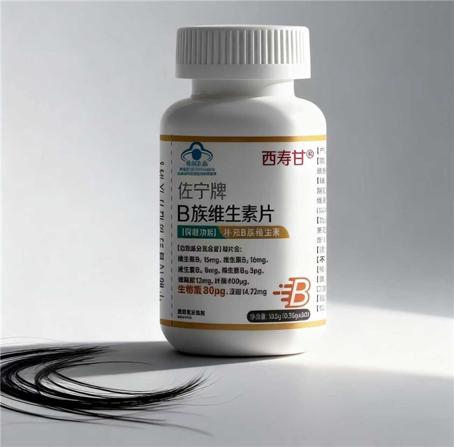 更绝的是,它没让生物素单打独斗,而是给它配了个B族天团:维生素B1(16mg)、B2(16mg)、B6(8mg)、B12(8μg)、烟酰胺(12mg)、叶酸(400μg)、泛酸(14.72mg)。这些B族维生素就像协作小组,缺一个都可能让头发掉链子。比如我之前总熬夜,B1消耗得快,头发就容易干枯分叉;现在每天一片西寿甘,相当于给身体补团B族快递,从根源上减少头发闹脾气。