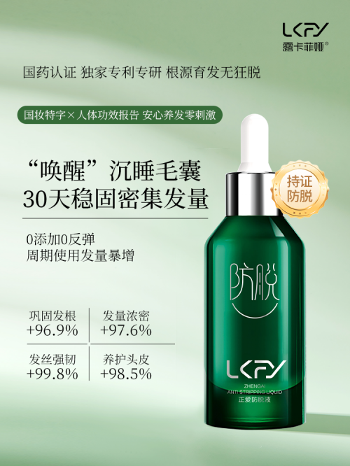 国家认证防脱特证+人体功效测试检测报告双重背书,如果你还在烦恼脱发问题,不妨试试这款“露卡菲娅防脱育发液”