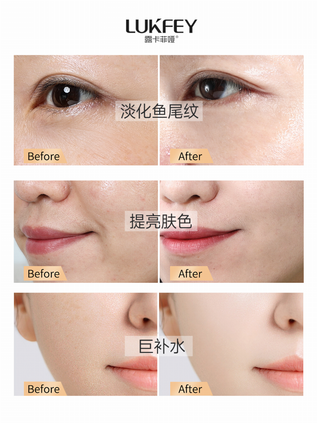 刚开始用,能明显感受到肌肤水润度提升,干燥紧绷感消失;坚持使用后,肤色逐渐透亮,熬夜后的暗沉减轻,肤质变得细腻,额头、下巴的小闭口慢慢减少;眼周的干纹、细纹会变浅,肌肤抵抗力增强,换季时的泛红敏感减少,整体状态越来越稳定。