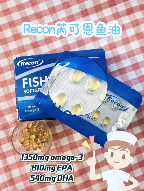 Recon 鱼油每份含 1350mg Omega-3,其中 EPA 为 810mg、DHA 为 540mg,二者以 3:2 的黄金比例搭配,确保成分浓度高且配比精准,为身体提供优质的 Omega-3 营养。