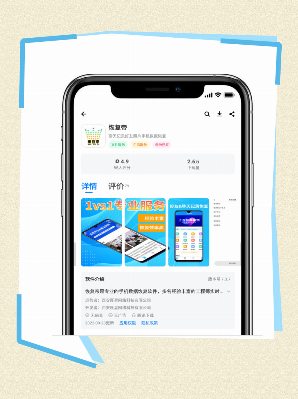安卓手机在手机应用商店直接搜索【恢复帝】,部分品牌手机(荣耀、三星等)也可在浏览器安装【应用宝】后,通过【应用宝】打开【恢复帝】,打开在首页就能看到对应的项目,选择好所需服务就能进行在线预约。