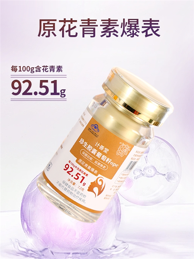 融入传统草本理念,除葡萄籽提取物外,复配了玫瑰花、丹参等成分,每 100g 含 13g 原花青素。