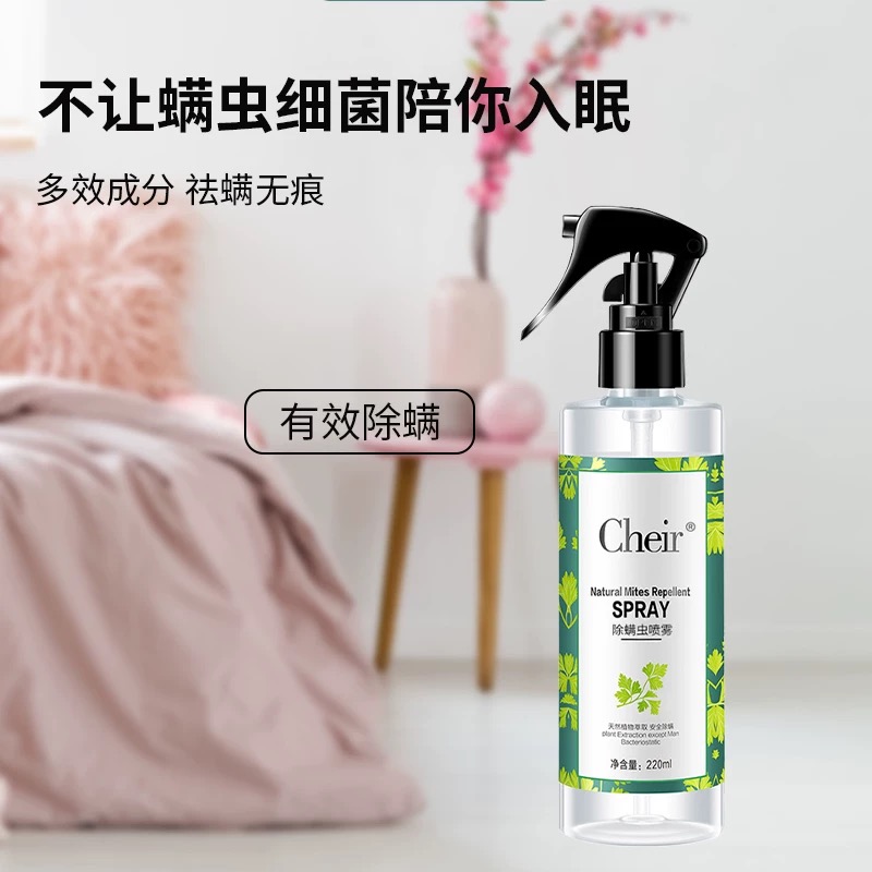 :依托纳米级微胶囊缓释技术,将植物祛螨素封装于直径 500nm 的微胶囊中,喷洒后均匀附着在床品纤维表面形成隐形防护膜。日常睡眠产生的织物摩擦会触发微胶囊缓慢破裂,持续释放活性成分,抑制螨虫交配与产卵,防护效果长达 30 天。实测显示,喷后 30 天床垫螨虫密度仍稳定在 0.1 只 /㎡,远低于 5 只 /㎡的安全线,每月只需喷洒 1 次,无需频繁操作。