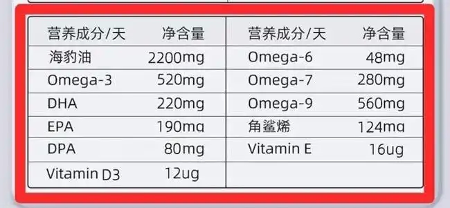 其中Omega3总量达520mg,DHA220mg、EPA190mg、DPA80mg构成黄金配比,恰似默契的三重奏;Omega7以280mg的轻盈韵律、Omega648mg的细腻音符、Omega9560mg的磅礴气势与之呼应,更有维生素D312ug、维生素E16ug与角鲨烯124mg点缀其间,共同编织成环环相扣的营养网络,构筑起产品坚实的核心堡垒。