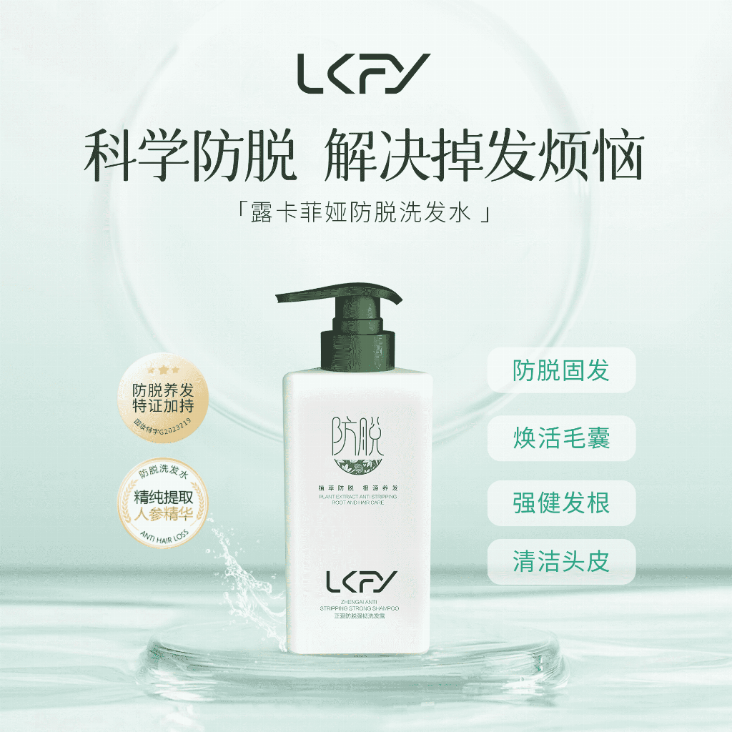 露卡菲娅防脱洗发水是露卡菲娅旗下的另一款明星产品,选用人参、当归、知母、何首乌、侧柏叶、姜根等草本植萃精华,他们相互协同,可以刺激头皮血液循环,滋养头皮,促进头皮水油平衡,为头发创造一个健康的生长环境。另外还添加了独家专研的防脱发因子和进口的防脱成分,可以从根源处解决脱发难题,促进头发健康生长。