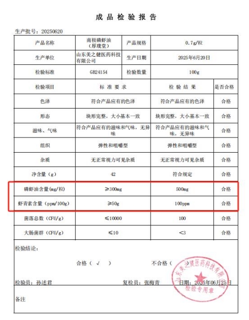 每粒磷虾油 500mg,虾青素含量更是实在,每 100g 有 100PPM,赵经理那瓶放了 11 个月,打开还是透亮的,一点没哈喇味,这就是虾青素的 “保鲜力”,比他之前吃的牌子(放 6 个月就浑浊)强太多。