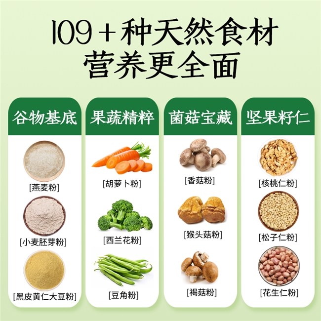 卓越的效果,源自于对纯净配料的坚持。在人人关注配料表的今天,扶偏的“干净”赢得了无数好评。这款产品里完全没有添加香精、色素、防腐剂这类化学物质,它呈现出的天然墨绿色外观,以及散发的淡淡藻香与果香,全都源自其中包含的109种食材本身,没有任何额外人工添加成分。这意味着您给家人补充的每一口,都是纯粹的自然风味和营养,安心无忧。