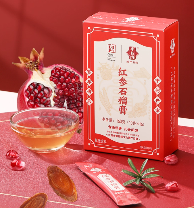 创新将红参与新鲜石榴融合,石榴的酸甜中和参的微涩,带来丰富口感层次。慢火浓缩工艺锁住营养,晨起搭配温水服用,既能补充元气,又能帮助提亮肤色,受女性喜爱。
