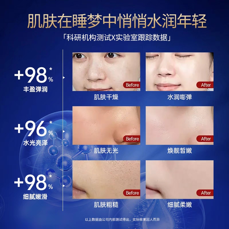 玻色因:更是紧致肌肤的王牌,能有效提升肌肤紧致度,对抗熬夜带来的肌肤松弛问题。多种珍贵成分协同发力,全方位修护熬夜后的肌肤,让肌肤重焕光彩。