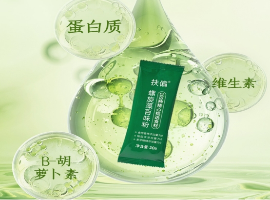 除了上述食材,扶偏螺旋藻还特别添加了螺旋藻粉与蛋白核小球藻,实现双藻赋能。螺旋藻粉富含多种维生素、矿物质和蛋白质,是一种优质的天然营养源,能够快速为身体补充能量,增强免疫力。蛋白核小球藻则含有丰富的叶绿素和生长因子,有助于促进细胞再生和修复,提高身体的自我修复能力。二者相互配合,为身体提供更全面、更深入的营养支持。