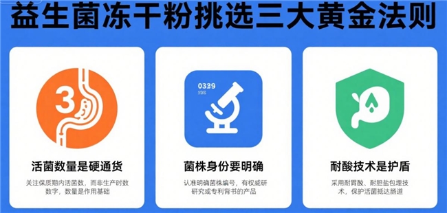 其实很多人选益生菌时,都容易掉进 “只看活菌量” 的误区,实际上下面这 3 点才更关键: