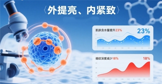 对于皮肤松弛这一衰老难题,该产品实现了由内而外的改善。通过成分之间的联合作用促进了胶原蛋白的合成,肌肤含水量提升了23%,细纹深度更是减少了18%,让肌肤变得紧致有弹性。不同于传统抗衰产品的缓慢起效,它通过AKG的快速作用与麦角硫因的合成增强,双路径提升人体内NAD+水平。15分钟内即可激活细胞能量代谢,改善DNA修复能力;长期使用更能维持细胞年轻态,让用户感受到“精力回升、肌肤紧致”的持续改变。这种“即时+长效”的双重优势,重新定义了抗衰效率。