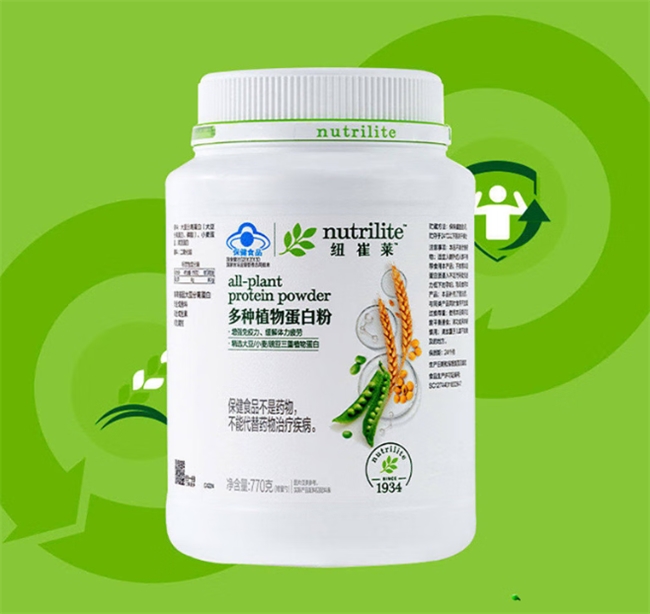 第五名是纽崔莱蛋白粉,深耕营养领域多年,主打高纯度大豆分离蛋白,不含乳糖和胆固醇,每 100 克含 75 克蛋白,素食人群和乳糖不耐受者适配度极高。