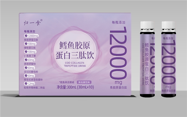 融合野生挪威鳕鱼原料,每瓶胶原蛋白肽含量12000mg,并协同100mg弹性蛋白肽、100mgγ-氨基丁酸、50mg SOD酵母粉、50mg雨生红球藻微囊粉及透明质酸钠等成分,多效协同覆盖美容、保湿、抗氧化等需求。高浓度肽和液态饮品形式,有利于养护吸收,适合日常保养和综合营养补充。包装设计简洁有质感,适用范围广,尤为适合希望通过日常摄入提升皮肤状态、改善弹性和水润度的人群。