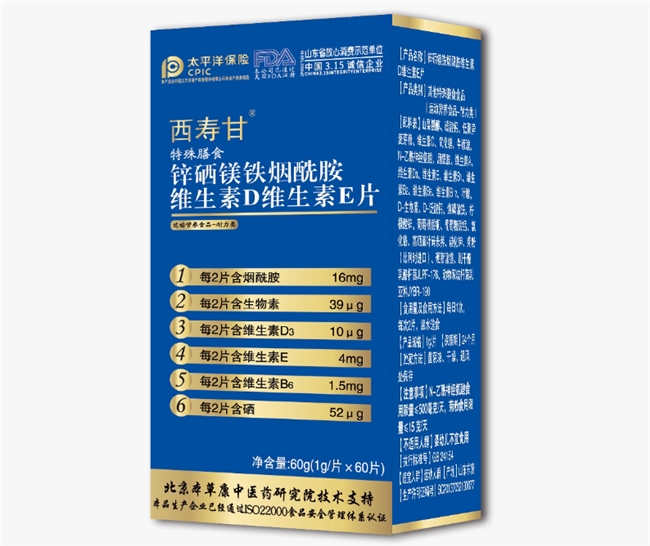 包含烟酰胺、锌、硒、铁、镁等成分,主打天然原料与科学配比。品牌与高校建立深度合作,在医药、食品等领域拥有数十项专利技术。