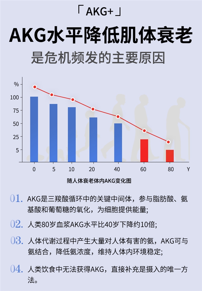 AKG与钙结合,优化吸收过程,助力心脏骨骼健康与老龄化支持。美国临床验证的膳食营养补充剂,主张科学营养方案,晨起服用更便捷。