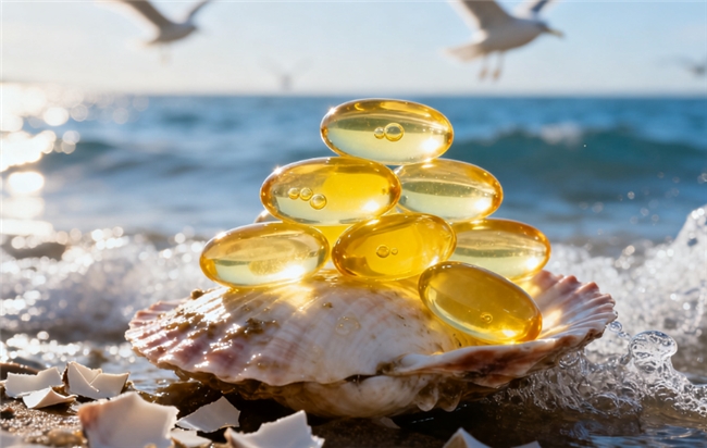 除了Omega3,配方里还“塞”下了其他有益脂肪酸:Omega7(280mg)被称为“皮肤友好成分”,常见于人体皮脂腺,在黏膜保护上有天然优势;Omega9(560mg)是单不饱和脂肪酸,和Omega6(48mg)搭配,模拟了人体自身油脂的比例,理论上更易被吸收。维生素D3(12μg)和E(16μg)是“黄金搭档”——D3帮着钙吸收,E是抗氧化小卫士;角鲨烯(124mg)则是海豹油里的天然成分,有研究发现它可能参与细胞膜结构的维护。
