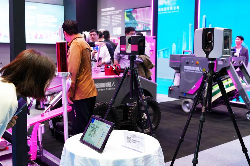 混凝土施工类机器人与地坪施工类机器人通过动态演示与模拟场景,呈现毫米级精度控制与全自动作业优势,测量机器人更是以1个小时测量超300㎡ 的效率数据,展现实测实量环节的智能化升级。