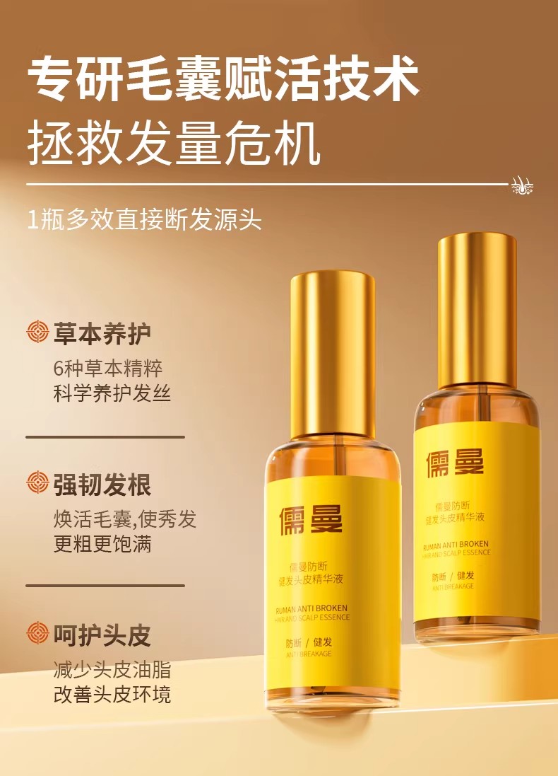 单用洗发水能解决表面问题,但对于已经出现严重断发和深层毛囊萎缩的情况,我们需要更强的“营养导入”。这里强烈推荐黄金搭档:儒曼健发去屑止痒洗发露 + 儒曼防断健发头皮精华液。