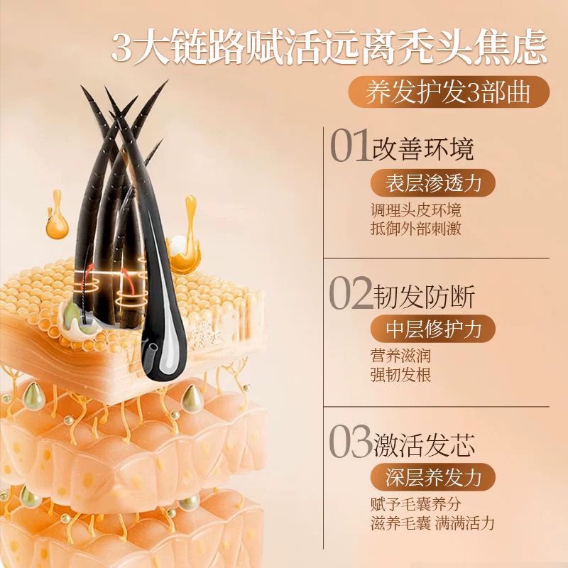 洗发打开毛囊通道,清除油脂、头屑与污垢,打造干净吸收环境。