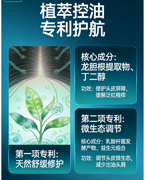 儒曼控油蓬松洗发水以“根源控油、温和护头皮”为核心,搭配专利成分组合,无需频繁洗头,即可维持长效清爽。核心控油成分乳酸杆菌发酵产物、乳酸杆菌(专利号:ZL202110065342.1),可调节头皮微生态平衡,抑制有害菌繁殖,从根源减少油脂过度分泌,避免“越洗越油”,减少洗头频率。