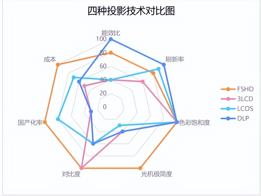 FSHD显示技术,彻底解除了国产LCD投影机产业头上的封印,以高亮度、高色域、高分辨率和高画质,媲美甚至超越了传统两大高端技术的能效比表现、色域表现,在画质和分辨率方面,还有更好的表现。