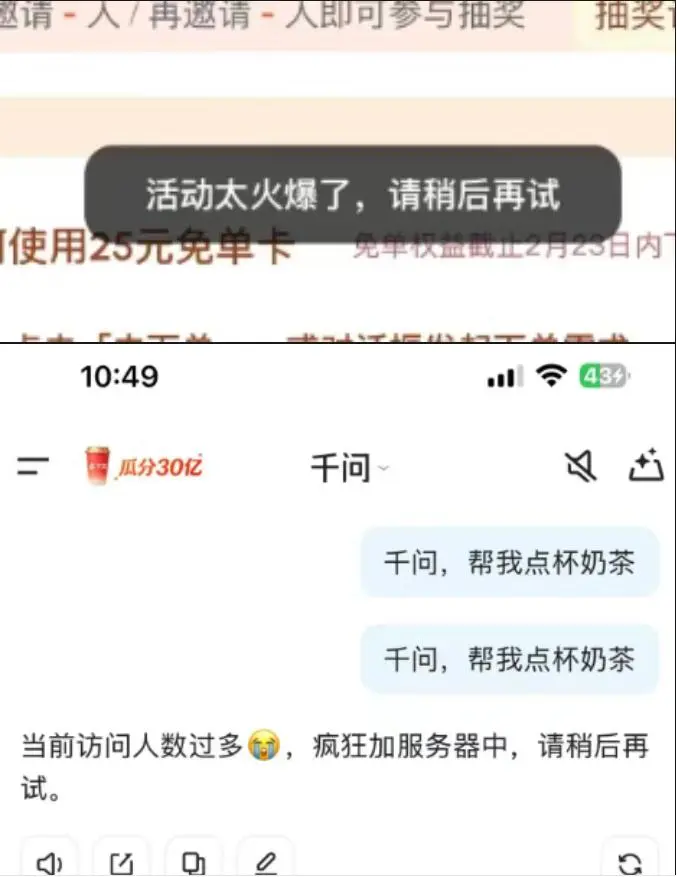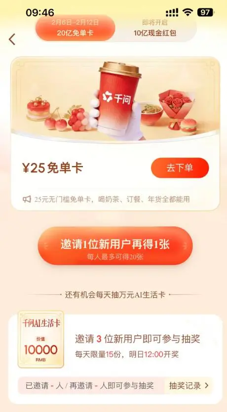 2月6日,千问APP“春节30亿大免单”正式启幕,一句“用AI点奶茶”的轻量化指令,便如星火燎原般点燃全国消费热情——无需烦琐操作,一句话便可免单,让都市用户争相涌入,连点单系统都热到不行,陷入短暂“卡顿”。
