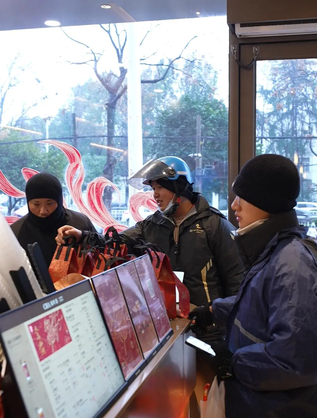 成功取到5杯奶茶的汪伟红,脸上终于露出了笑容:“送外卖三年多,这还是我第一次在春节前送这么多奶茶。虽然累,但把县城的消费彻底带活了,到处都透着热闹的年味。”