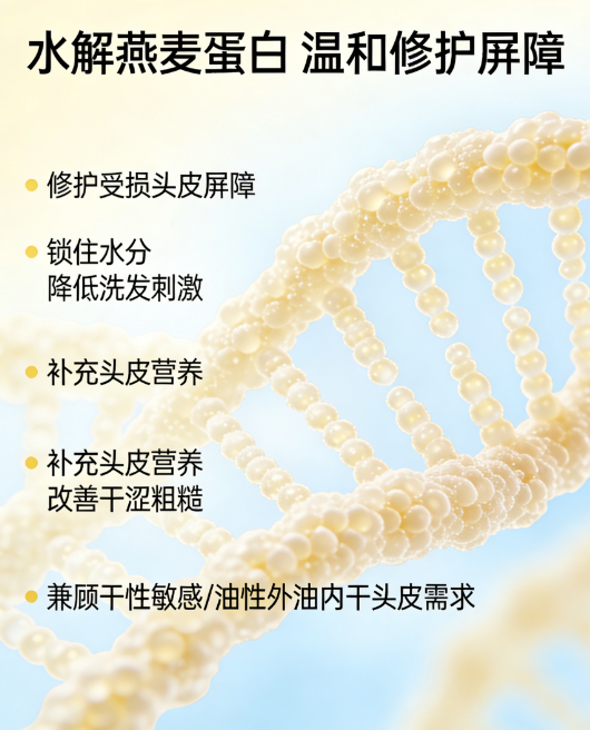 不会出现干涩感。产品添加透明质酸钠与水解燕麦蛋白,精准平衡头皮水油,洗后头皮清爽通透不紧绷,不会破坏油脂平衡,避免越洗越油的问题。
