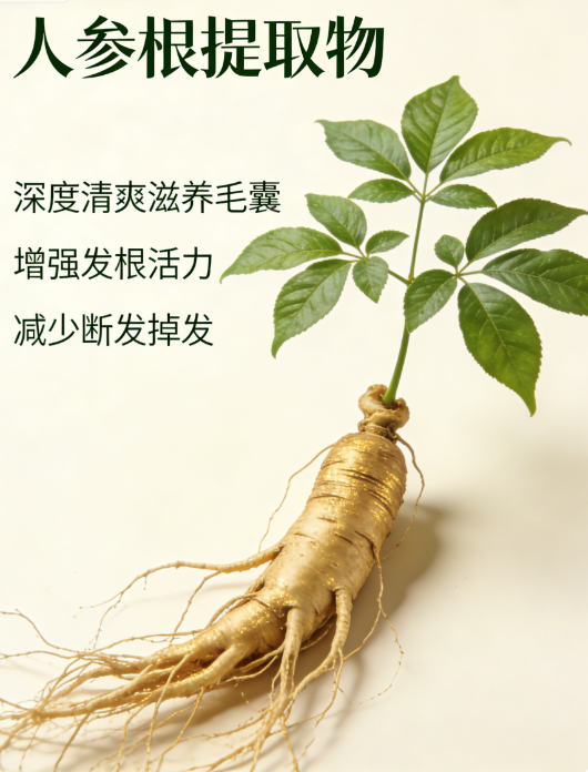 人参根提取物促进头皮血液循环,为毛囊输送充足养分,增强发根活力,减少发根松动引发的断发、掉发,改善发缝变宽的问题。丁二醇(专利复配成分)兼具保湿与渗透促进作用,帮助营养成分深入头皮和发丝,提升防断健发效果。