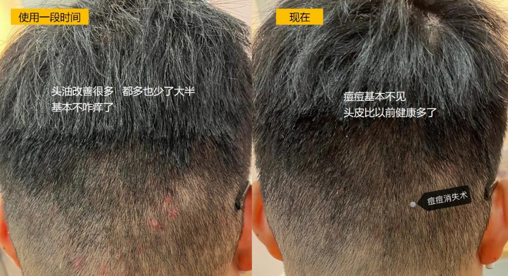14 天效果:头屑减少率 48%,瘙痒缓解率 57%;断发量减少 35%,头皮出油量减少 40%。