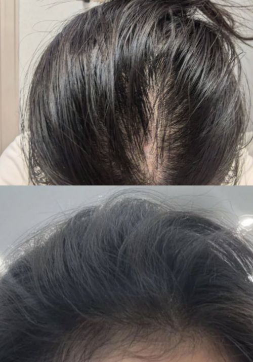 实测显示使用1周期(3瓶)后脱发量几乎砍半,洗澡地漏终于不堵了。更惊喜的是1-2周期休眠毛囊被激活,头顶发际线、发缝处炸出999+绒毛;2-3周期,防脱-育发-密发进度到末尾,发缝变细,头发整体变厚变强韧!(618选周期装更划算噢~)